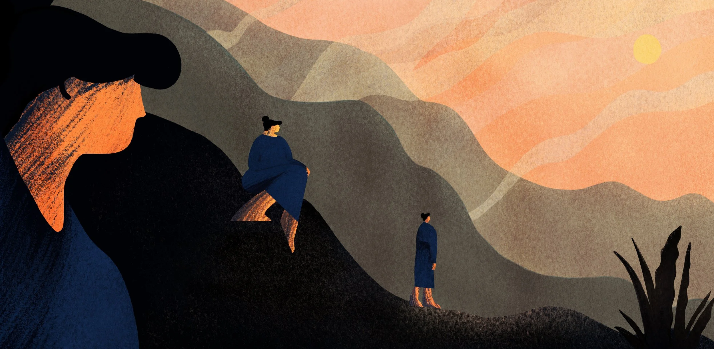 Illustration about a grieving mother's journey after the death of her husband and how she reconnects with her true self by going through experiences with her daughter.